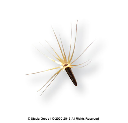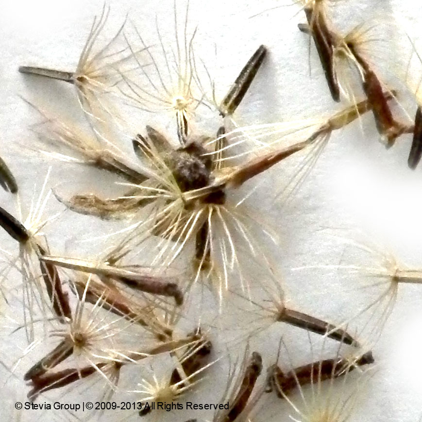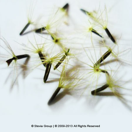 Der Stevia Samen ist ca. 3 mm lang und gehört zur Familie der einsamigen Schließfrucht (Achäne, wie auch der Löwenzahn). Der Samen der Stevia Pflanze ist mit einer flugfähigen federartigen Haarkrone ausgestattet. Nach dem Reifungsprozess fallen die Stevia Samen, die sich in Samenkelchen bilden, leicht heraus. Stevia ist ein Lichtkeimerund auf feuchtem Boden beträgt die Keimzeit bei einer Keimtemperatur von 20-25 Gradbis zu 14 Tage.